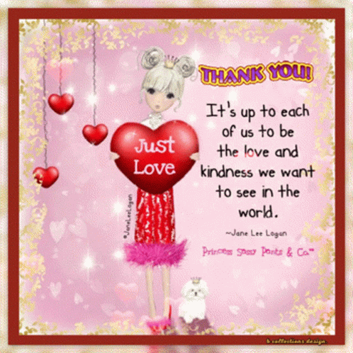 a thank you card with a girl holding a heart