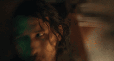 a close up of a man 's face with a blurred background