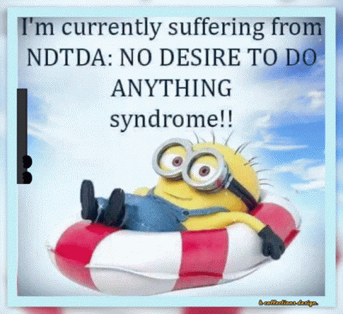 a picture of a minion laying on a life preserver with the caption " i 'm currently suffering from "