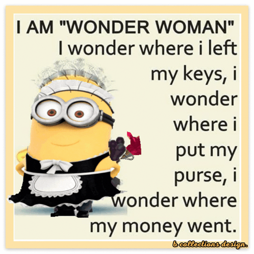 a picture of a minion dressed as a maid with the words " i am wonder woman " on it