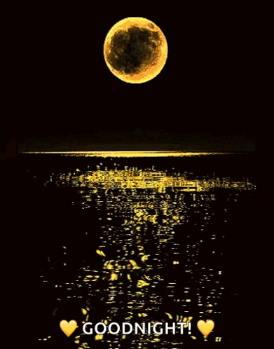 a full moon over the ocean with the words goodnight written below it