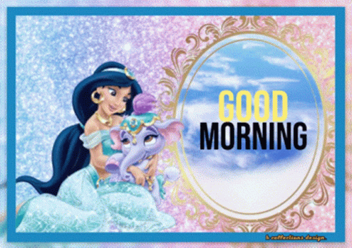 a picture of jasmine and an elephant with the words good morning on it