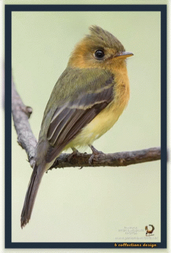 a small bird is perched on a branch with a b collections design watermark