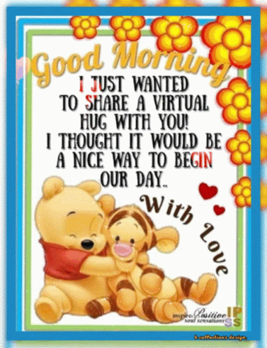 a picture of winnie the pooh and tigger hugging with the words " good morning "