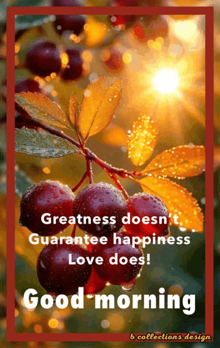 a good morning message with a picture of berries and leaves