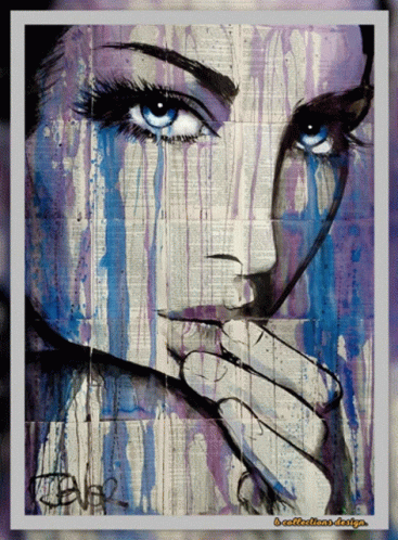 a painting of a woman 's face with a hand on her mouth
