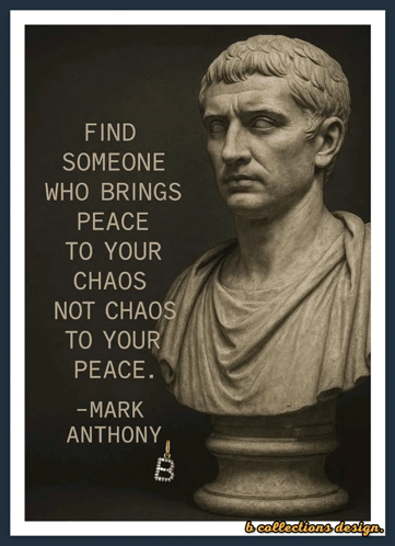a poster with a statue of a man with a quote from mark anthony