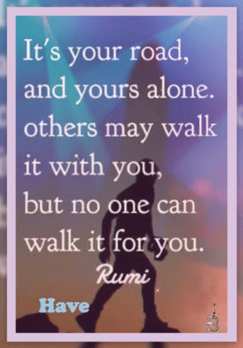 a quote from rumi says it 's your road and yours alone others may walk with you but no one can walk it for you