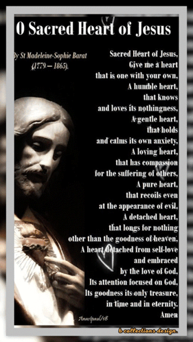 a poster that says o sacred heart of jesus by st. madeleine-sophie barat