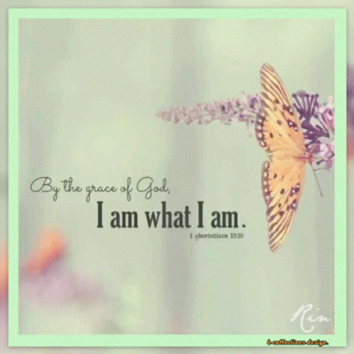 a picture of a butterfly with the words by the grace of god i am what i am on it