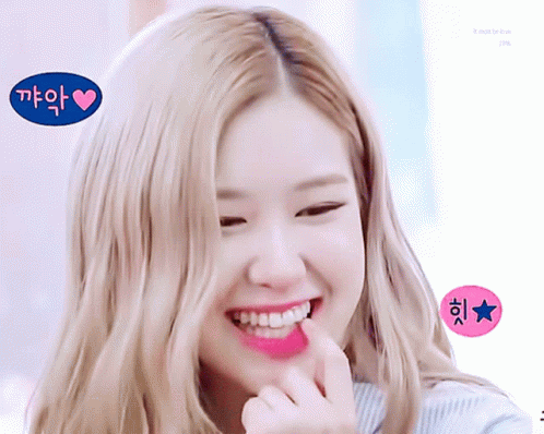 a girl with blonde hair is smiling with a pink heart and a pink star around her mouth