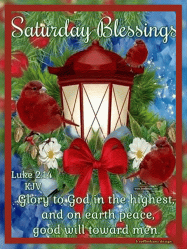 a saturday blessings greeting card with a lantern , birds , flowers and a quote from the bible .