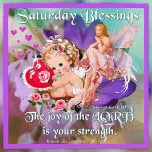 a picture of a little girl with angel wings and the words have a blessed saturday