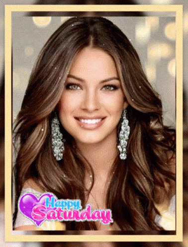 a picture of a smiling woman with the words happy saturday on the bottom