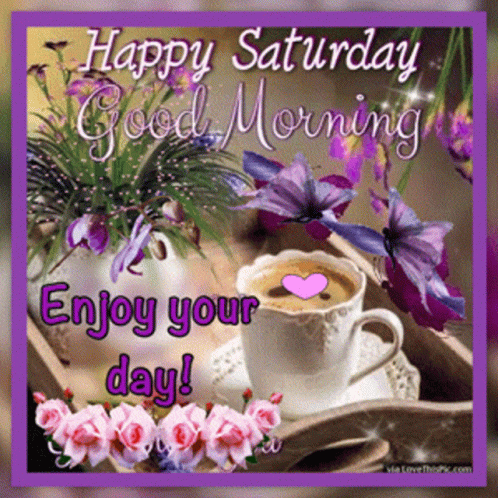 a saturday good morning greeting card with a cup of coffee