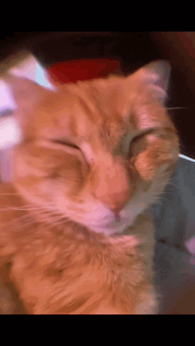 a close up of an orange cat sleeping with its eyes closed