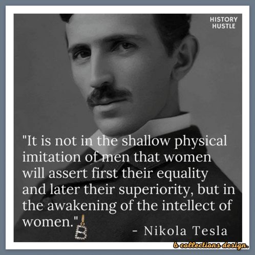 a black and white photo of nikola tesla with a quote from him
