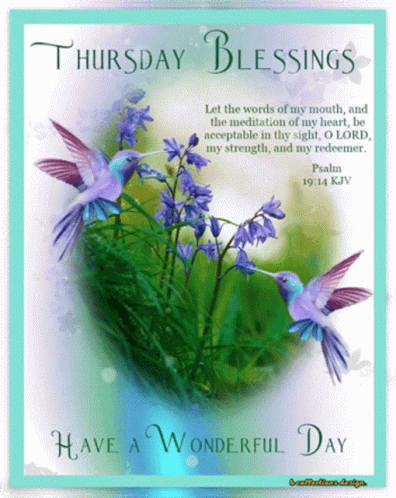 a thursday blessings greeting card with two hummingbirds and flowers