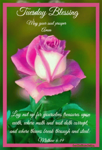 a pink rose with the words tuesday blessing written on it