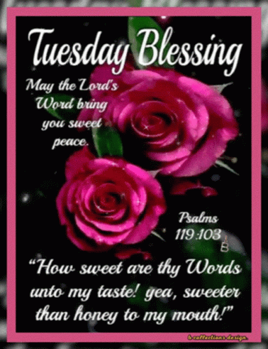 a tuesday blessing with roses and a bible verse