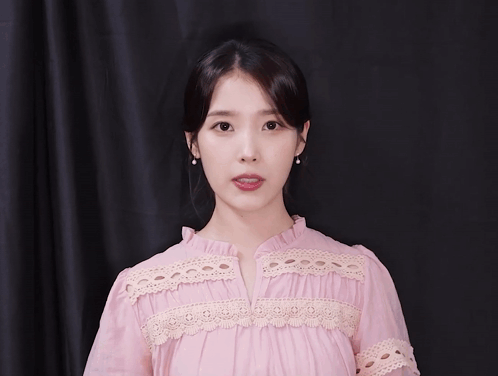 a woman in a pink dress with white lace trim