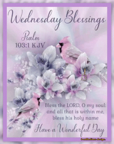 wednesday blessings psalm 103: 1 kjv with purple flowers and birds