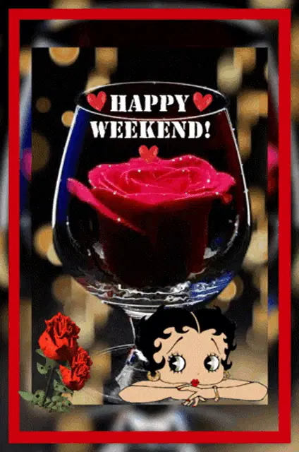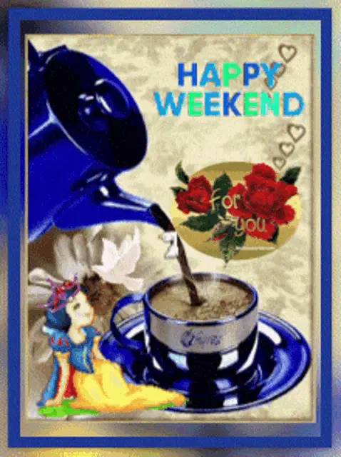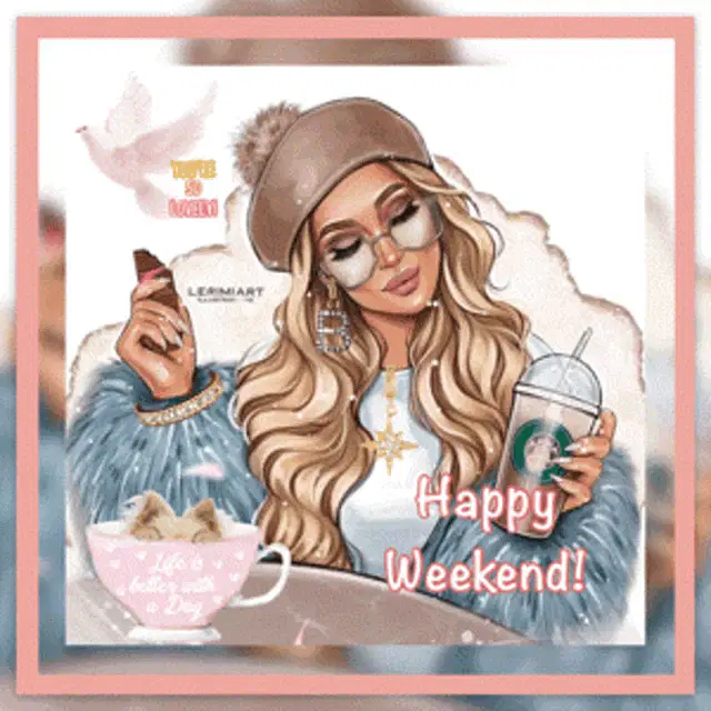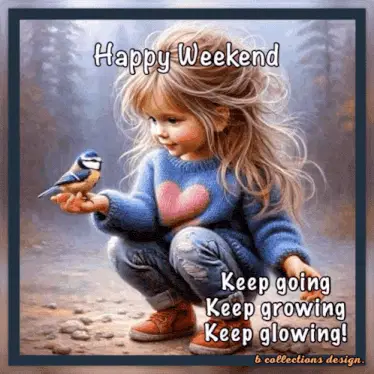 a painting of a girl and two white dogs with the words have a joyful weekend my friend