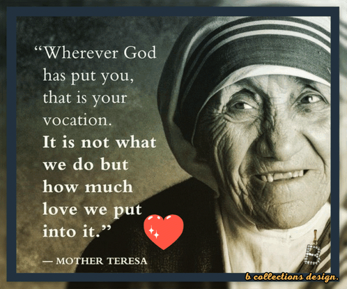 a quote from mother teresa is displayed on a poster
