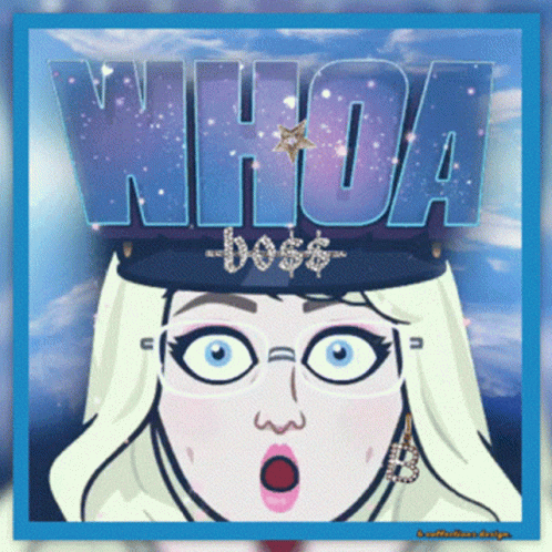 a cartoon of a woman wearing a hat that says whoa boss on it