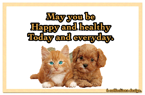 a picture of a cat and a puppy with a message that says may you be happy and healthy today and everyday