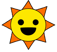 a cartoon sun with a smiling face and orange rays